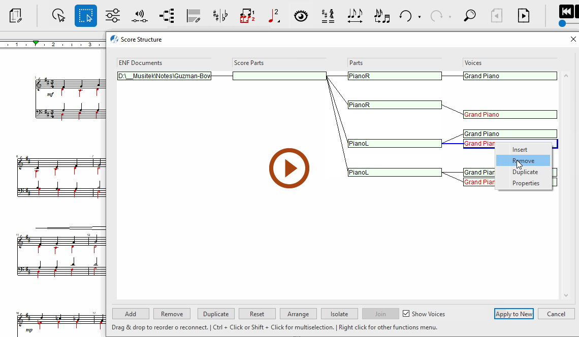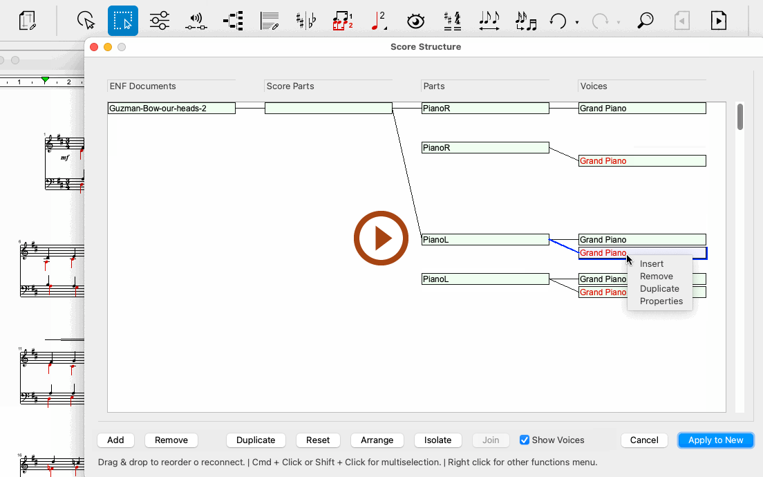 Animation (0:42) - Splitting voices into individual staff lines (Score Structure)